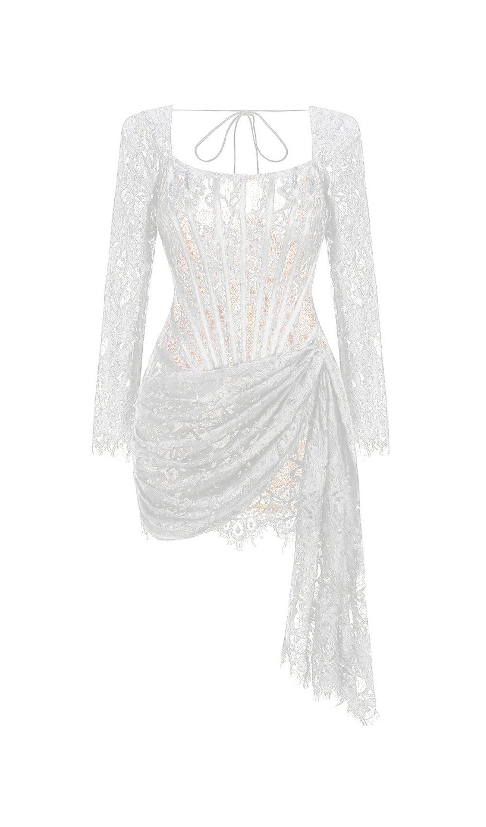 Prepare to command attention and radiate unparalleled confidence in our exquisite Callan Black Lace Long Sleeve Corset Mini Dress. Designed for the woman who isn't afraid to make a statement. this dress is your ultimate weapon for any glamorous occasion.