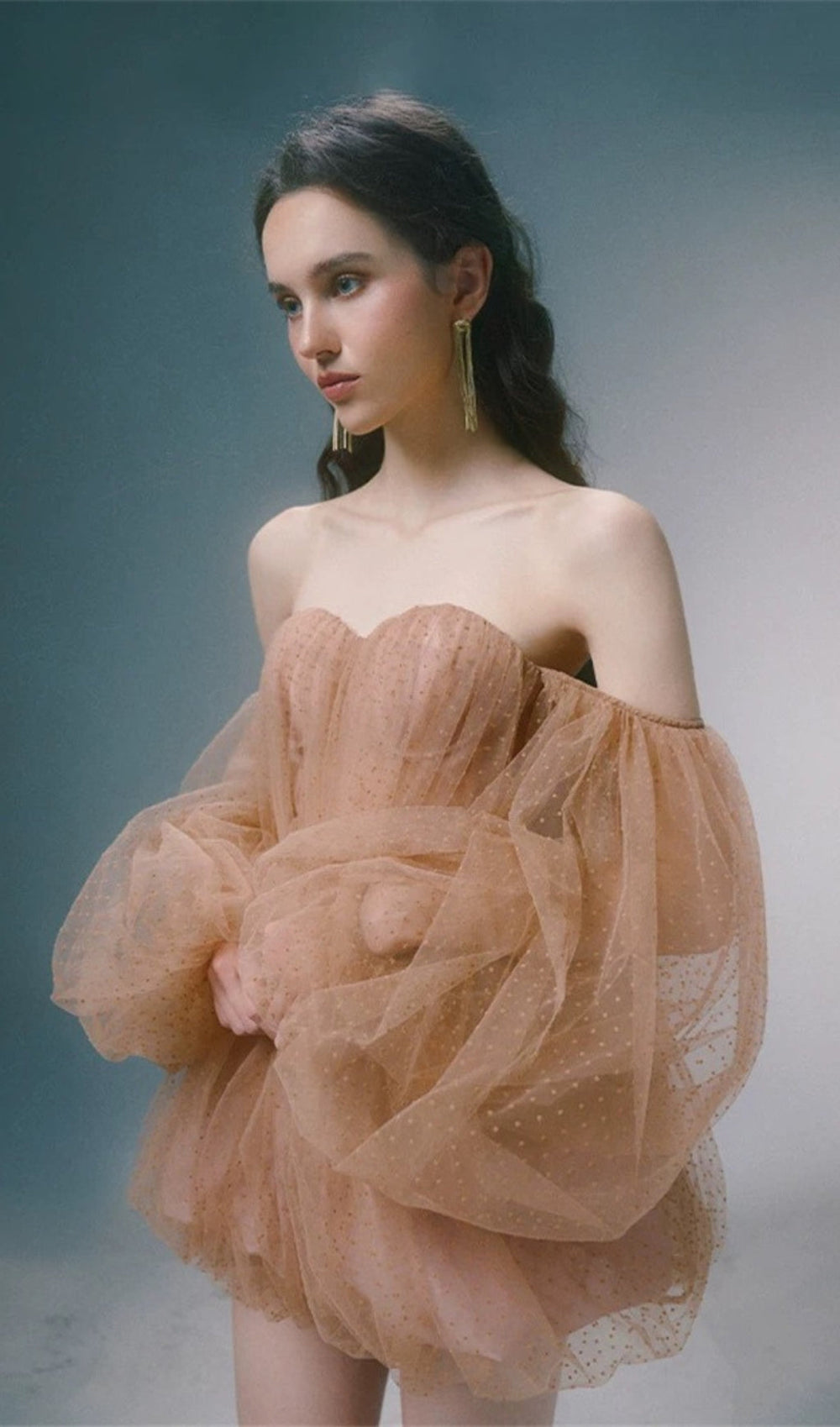 Step into a world of whimsical charm and captivating allure with our Dolly Khaki Off-Shoulder Mesh Mini Dress. Designed for the woman who loves to make a statement. this enchanting mini dress combines playful elegance with a touch of modern romance. Its unique design is perfect for those unforgettable nights out. special occasions. or any event where you want to feel effortlessly beautiful.