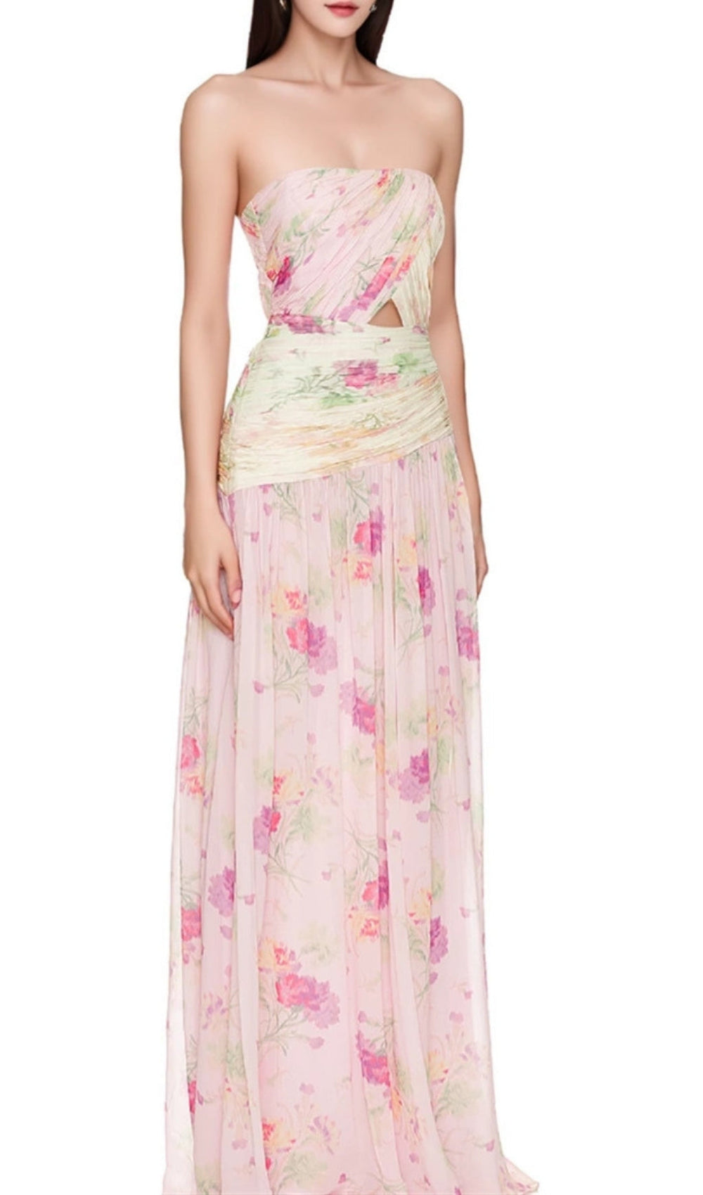 Step into a world of vibrant elegance and carefree charm with the Erizelda Strapless Floral Printed Maxi Dress. Designed for the modern American woman who cherishes both style and comfort. this breathtaking dress brings a fresh burst of summer sunshine to any occasion. Its delicate floral pattern. combined with a gorgeously flowing silhouette. ensures you'll turn heads and feel fabulous wherever your day takes you.
