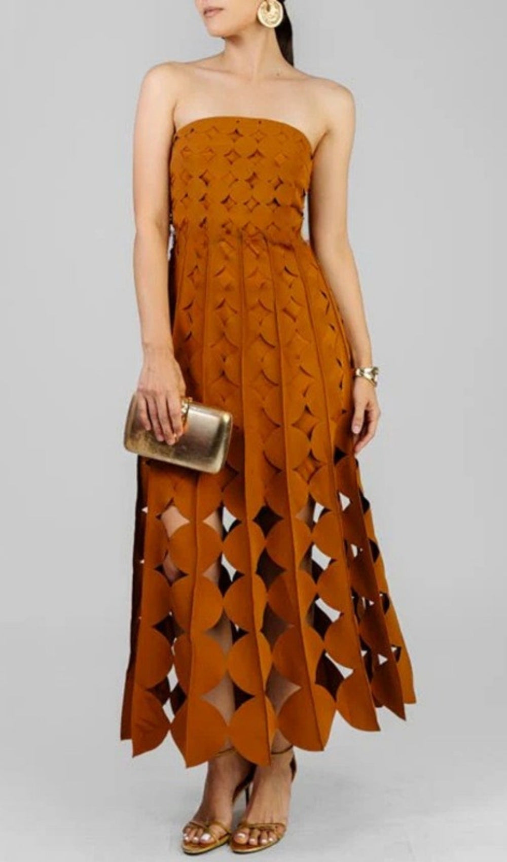 Step into the spotlight and captivate every gaze with the Fifi Terracotta Strapless Maxi Dress. This stunning piece is designed for the woman who loves to blend effortless elegance with a touch of playful allure. Its rich. warm terracotta hue and sophisticated strapless silhouette make it an instant showstopper for any special occasion.