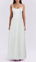 Below the captivating bodice. a luxurious. flowing maxi skirt cascades gracefully. crafted from a lightweight. ethereal fabric that creates stunning movement with every step. Its gentle pleats and voluminous drape ensure a show-stopping silhouette. balancing the fitted top with an air of delicate allure. perfect for gliding through any event.