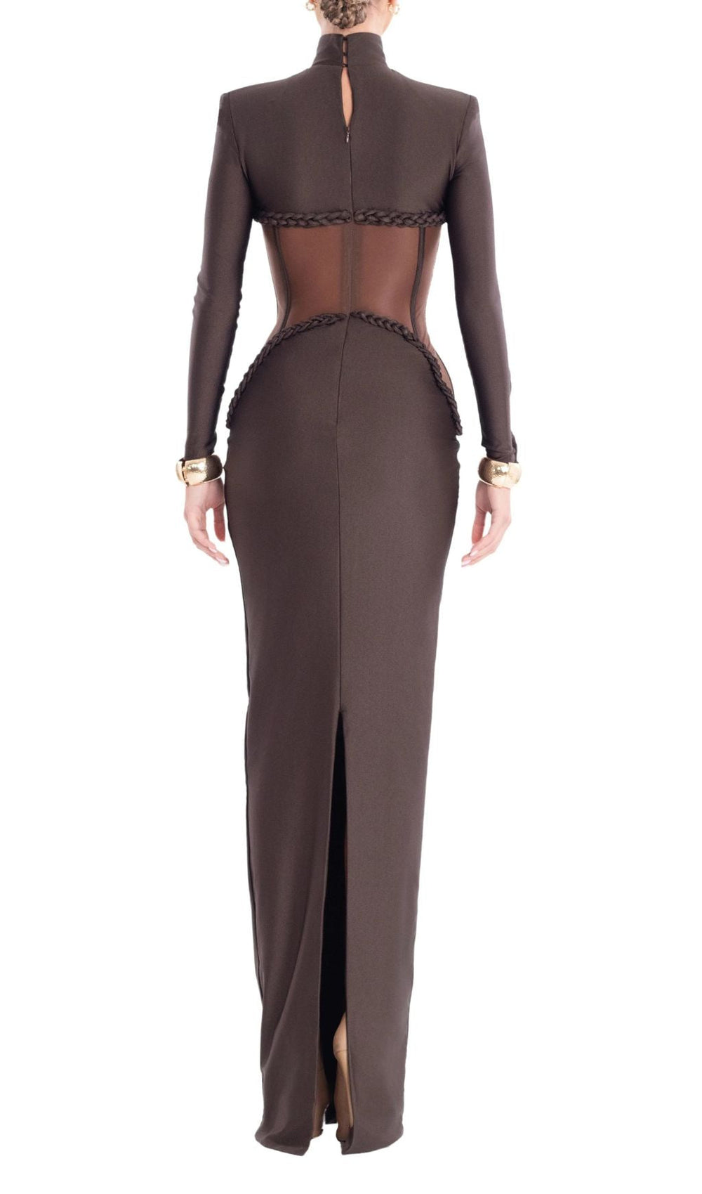 Step into an aura of unmatched sophistication and bold elegance with the Gravity Coffee Corset Long Sleeve Maxi Dress. This exquisite gown is a masterclass in design. seamlessly blending structural allure with a warm. inviting hue. destined to make you the center of attention at any upscale event.
