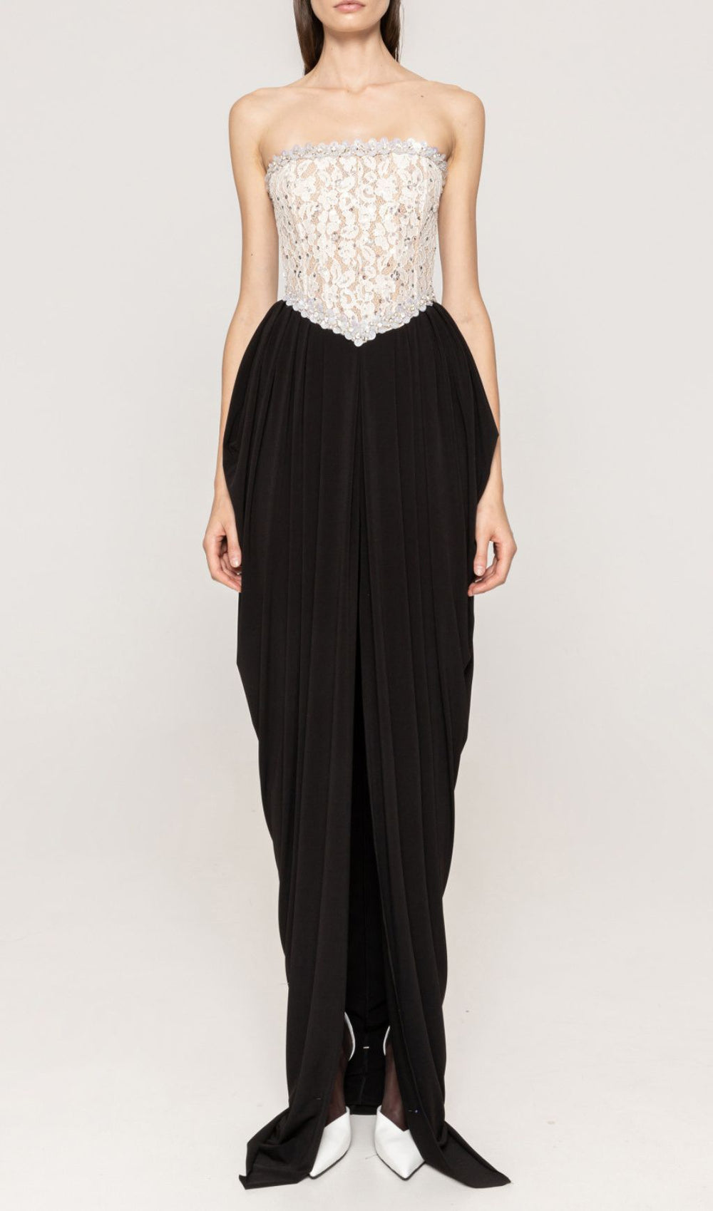 Step into a world where romance meets modern glamour with the Jordy Strapless Beaded Lace Maxi Dress. Designed for the American woman who commands attention. this exquisite gown is your ticket to an unforgettable evening. Crafted with meticulous detail. the Jordy dress promises to make you shine at any high-profile event.