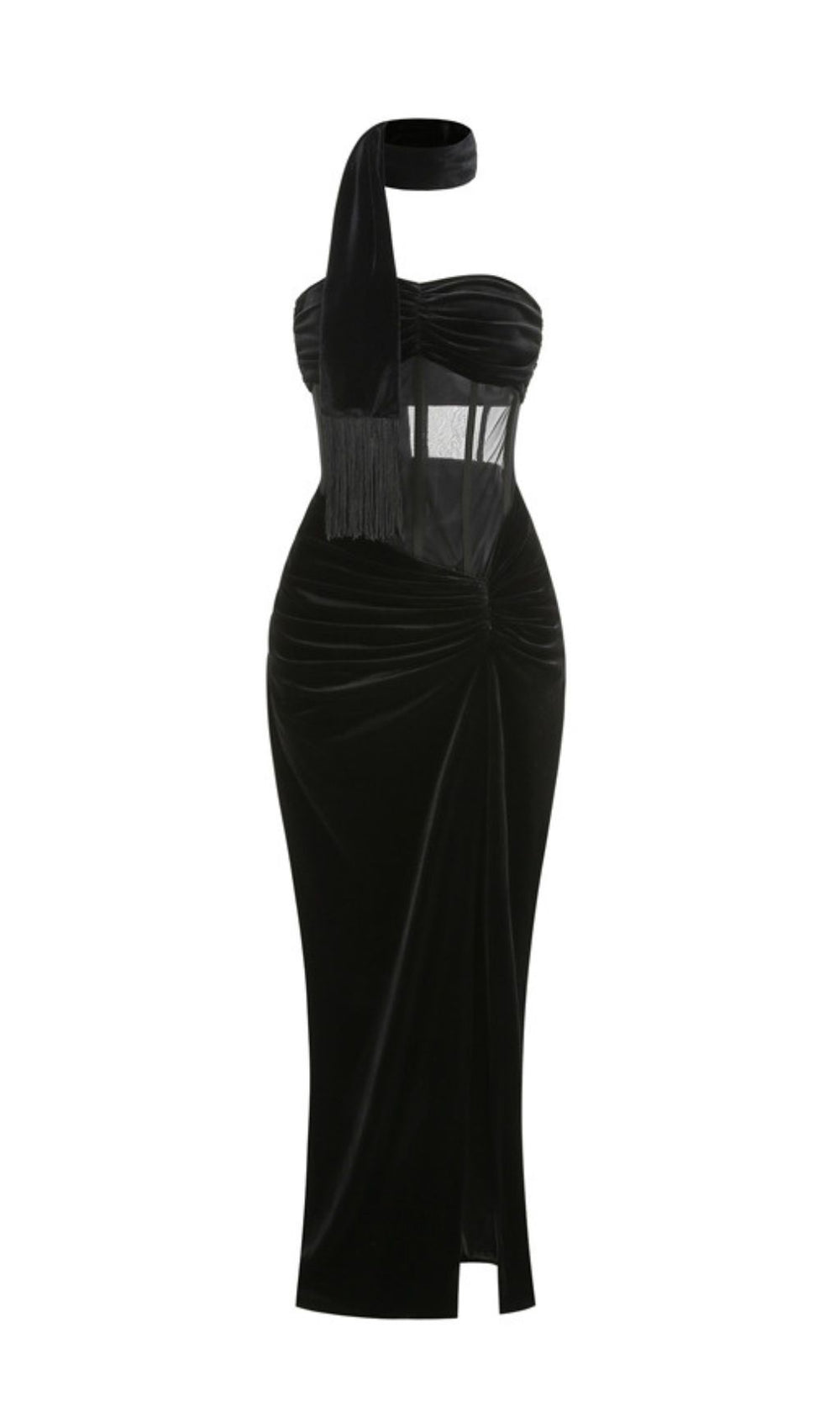 Step into any room and command attention with the Kahlani Dress. a masterpiece of old-world glamour redefined for the modern woman. This dramatic black maxi gown seamlessly fuses architectural design with timeless elegance. crafting a silhouette that embodies powerful romance and sophisticated allure.