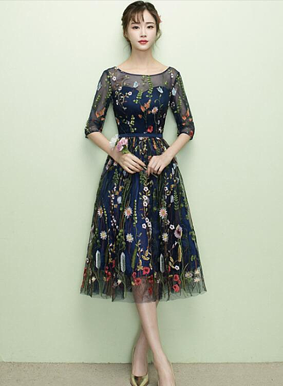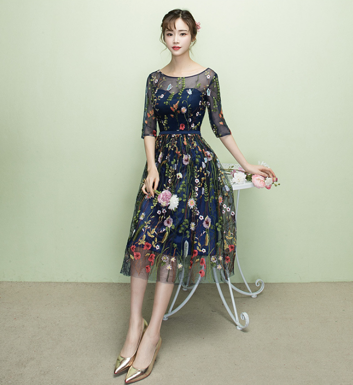 Color: Azul marino. Largo hasta la rodilla . Detalles de la espalda: Cordones.