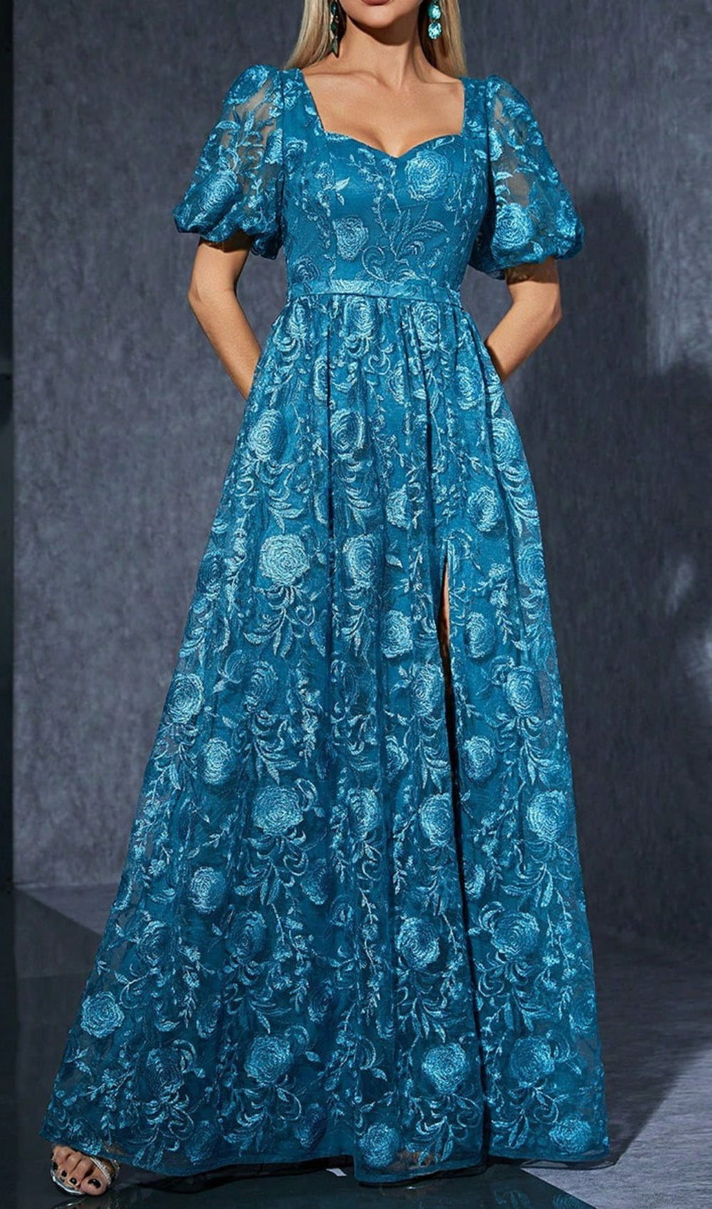 Step into a world of enchanting elegance with our **Dione Blue Floral Lace Maxi Dress**. Designed for the discerning American woman. this gown is a breathtaking fusion of timeless grace and contemporary allure. ensuring you make an unforgettable impression at any special occasion.