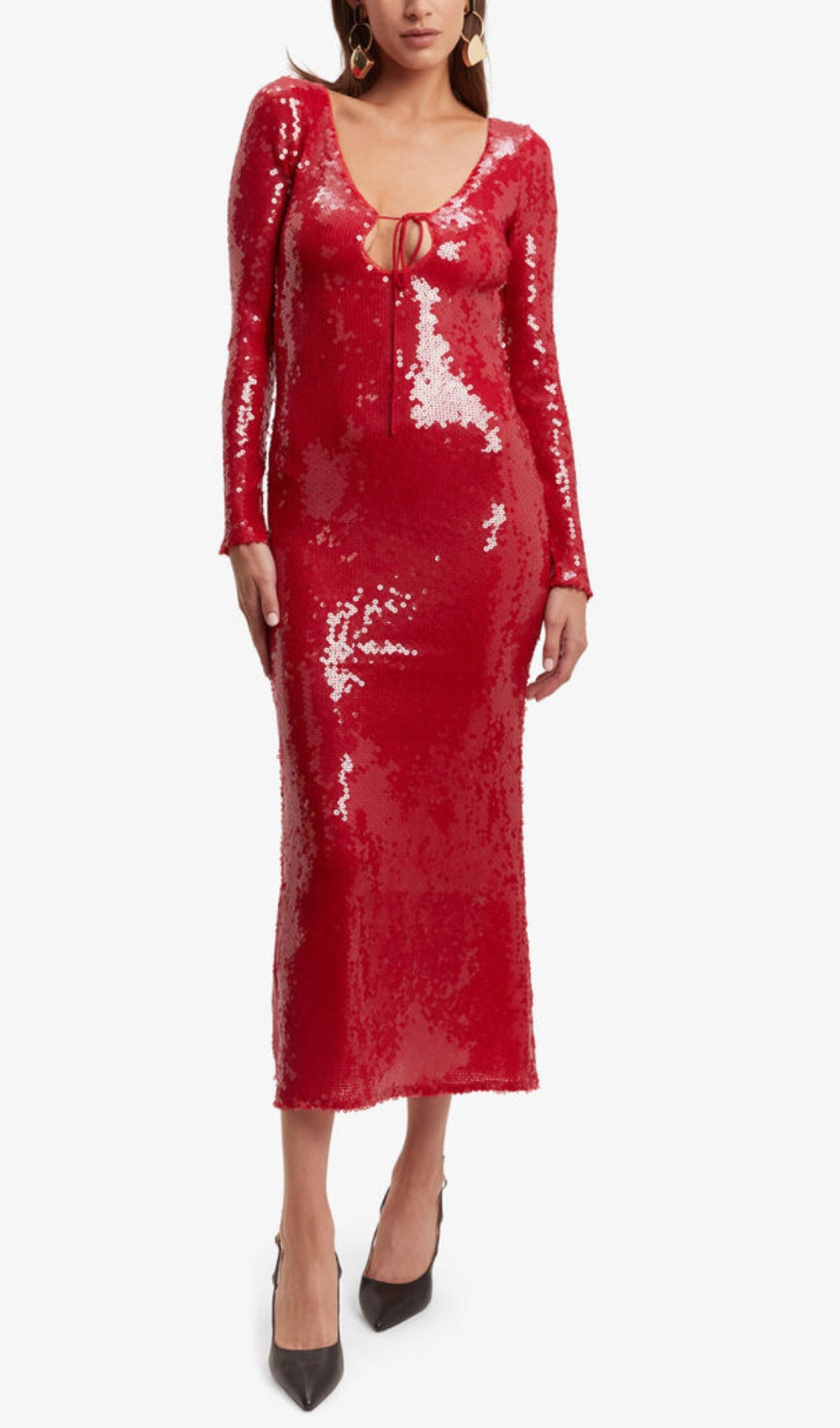 Embrace your sparkle and make a statement with the Betsy Red Sequin Midi Dress �your ultimate choice for glamour!