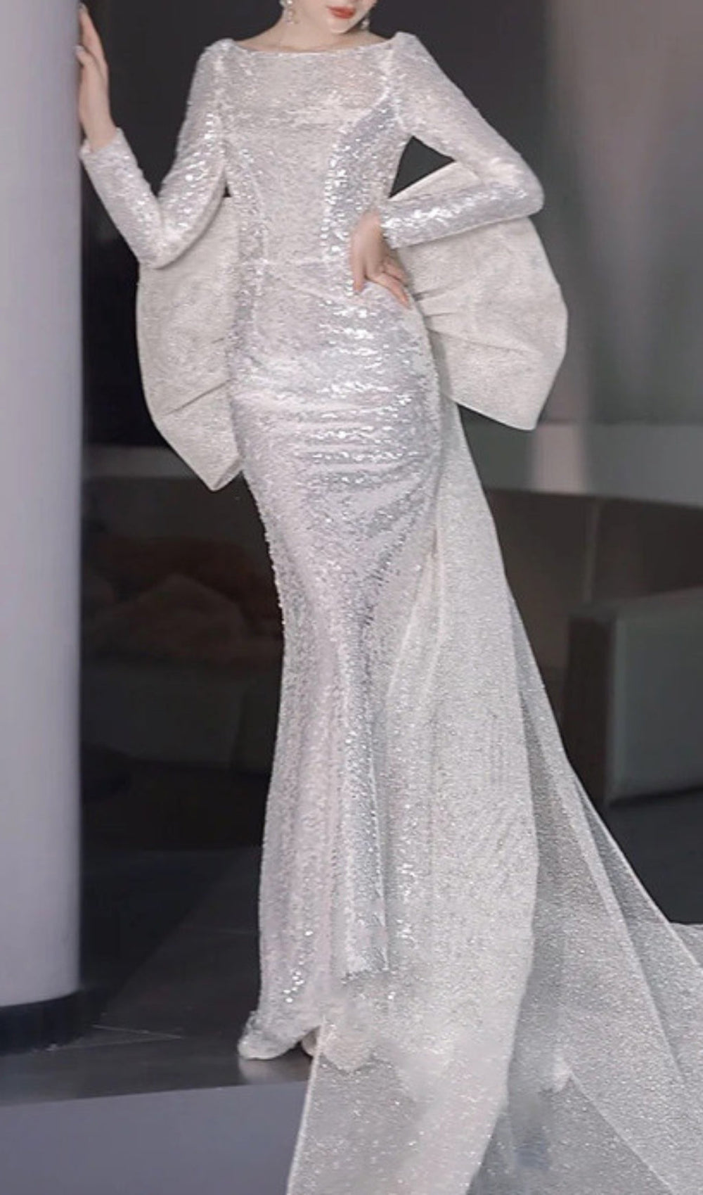 Prepare to command attention and radiate unparalleled elegance at your next grand event with the breathtaking Cyma Sequin Long Sleeve Mermaid Gown. Designed exclusively for the woman who desires to make an unforgettable entrance. this gown is a masterpiece of glamour and sophisticated style. ensuring you'll shine brighter than any star.