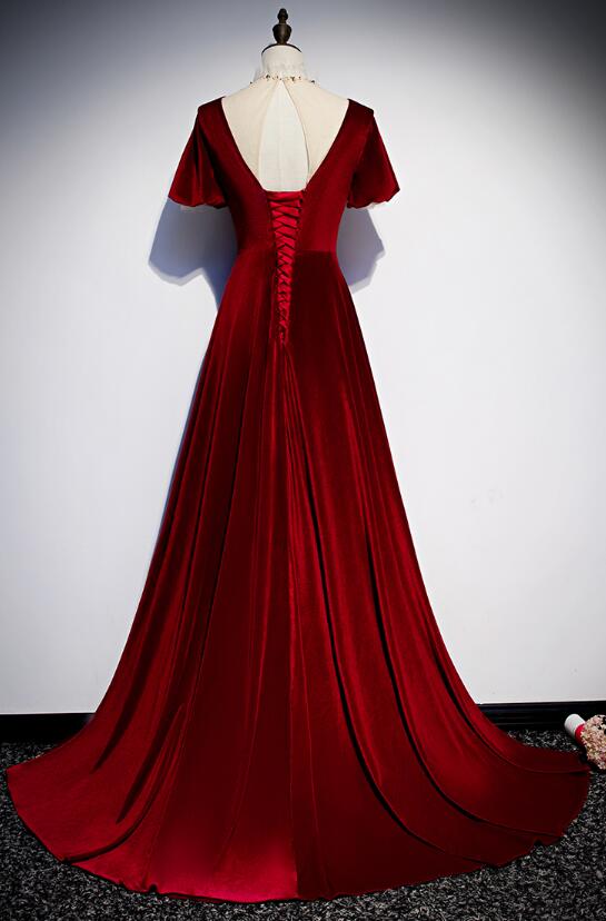 Color: Wine Red. Hemline: Floor Length. Back Details: Lace-up