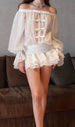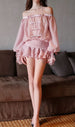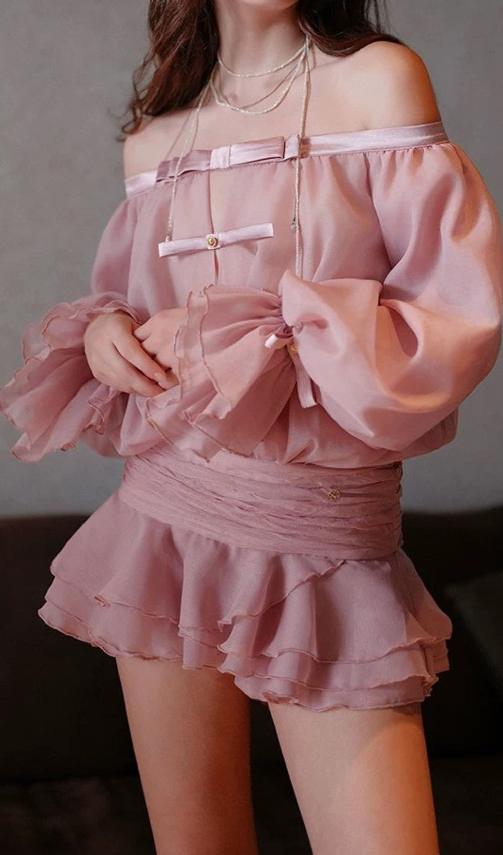 Step into effortless elegance and playful sophistication with the Darragh Off-Shoulder Ruffle Skort Romper. Designed for the modern American woman who values unique style and unparalleled comfort. this blush pink one-piece is more than just an outfit �it's a statement. Perfect for a chic brunch. a romantic date night. or an unforgettable girls' getaway. prepare to turn heads wherever you go.