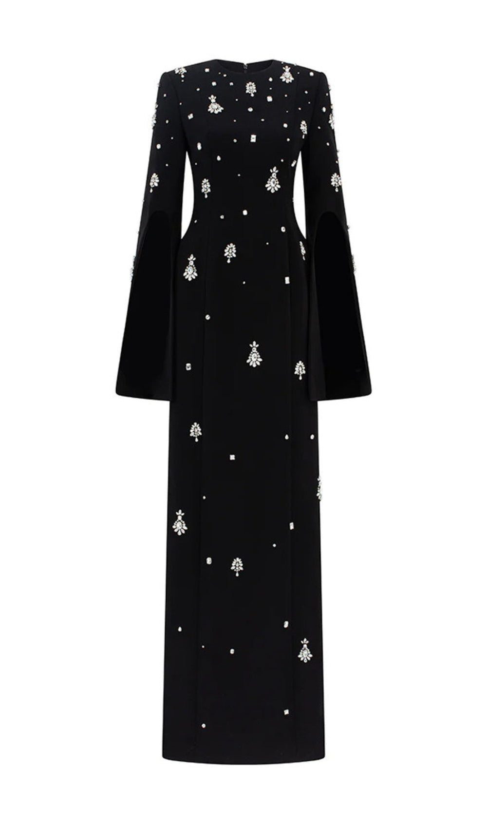 Step into a world of sophisticated glamour with our exquisite Davon Black Crystal Embellished Maxi Gown. Designed for the American woman who commands attention. this show-stopping piece is your ticket to turning heads at any special occasion. Imagine dazzling under the lights. feeling utterly confident and chic as the intricate crystals catch every sparkle.