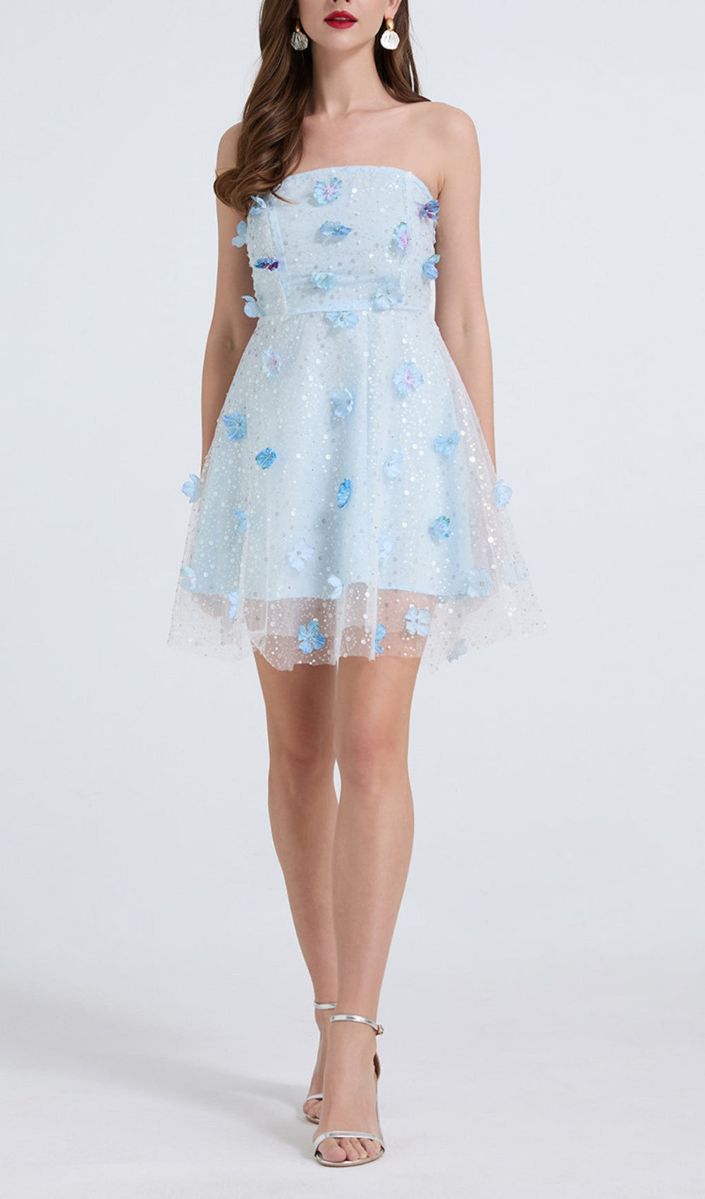 Step into the spotlight and captivate every eye with our enchanting Dilys Blue Floral Sequin Strapless Mini Dress. This isn't just a dress; it's a statement. designed to make you feel utterly radiant and unforgettable at your next special event.