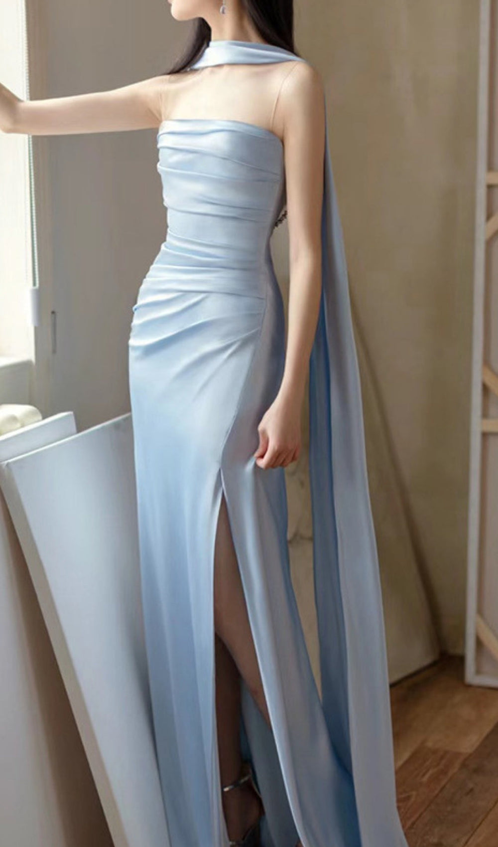 Step into the spotlight and command attention with the breathtaking Elandra Luxe Sky Blue Maxi Gown. Designed for the modern American woman who desires both sophistication and comfort. this gown is your ticket to an unforgettable evening. Its serene sky blue hue and luxurious satin-like fabric create an ethereal glow. ensuring you look and feel absolutely stunning.