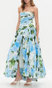 Step into a world of sophisticated charm with the Hestia Strapless Floral Maxi Dress. designed to make you feel effortlessly beautiful. This exquisite gown features a stunning watercolor-inspired floral print in serene shades of blue and vibrant green. set against a crisp white background. Evoking images of lush hydrangeas and blooming gardens. this dress is a true masterpiece of botanical beauty. perfect for captivating attention wherever you go.