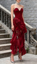 Step into the spotlight and command every gaze with the Hova Strapless Ruffle Maxi Dress. This breathtaking gown is meticulously crafted for the woman who desires to make an unforgettable entrance. blending dramatic flair with timeless elegance. Imagine floating through your most cherished moments. radiating confidence and sophisticated charm.