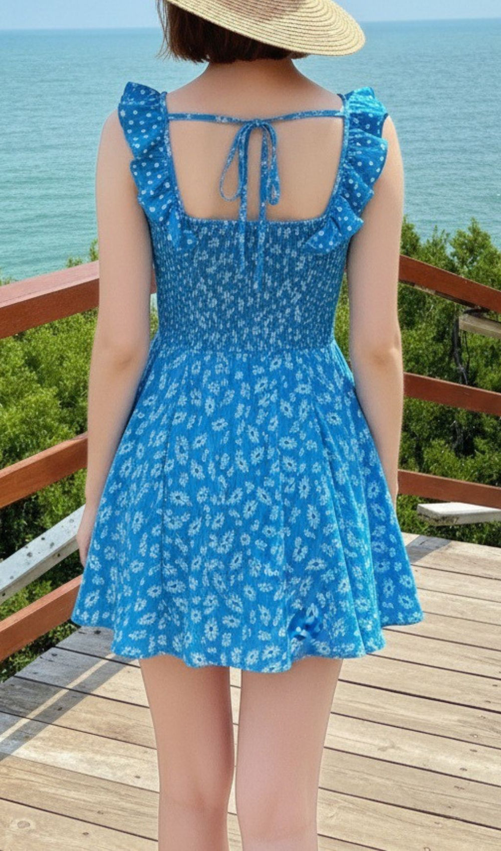 Step into sunshine and style with the Jalena Blue Floral Mini Dress. your essential piece for a season of effortless charm. Designed for the modern American woman. this captivating sundress radiates cheerful. feminine energy. perfect for capturing those carefree summer moments.