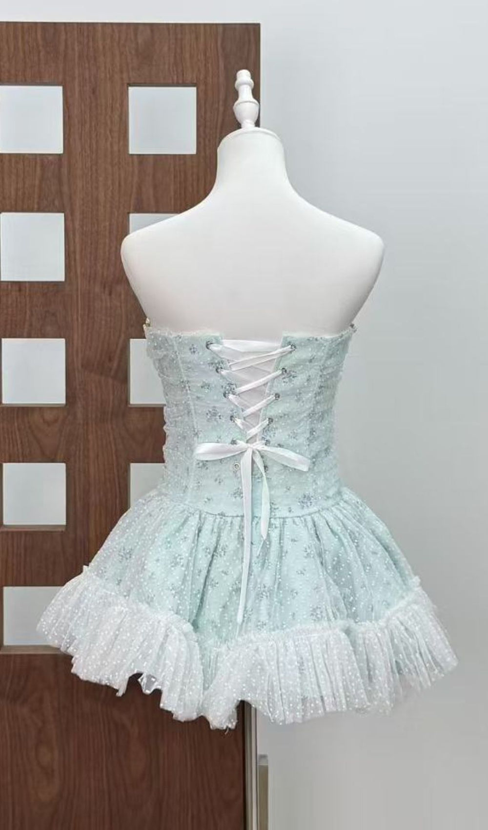 Step into a world where romance meets rebellion with the captivating Jaylynn Blue Floral Corset Mini Dress. Designed for the modern American woman who isn't afraid to make a statement. this dress masterfully blends a powerful. figure-sculpting corset bodice with a dreamlike delicate blue floral print and layers of whimsical ruffles. It's the perfect harmony of sweetly romantic allure and fiercely chic confidence.