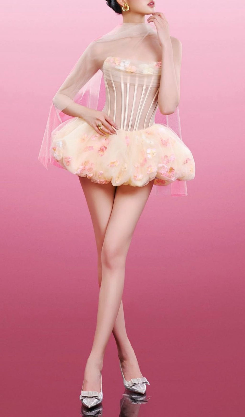 Step into any room and command attention with the **Jess Strapless Corset Floral Mini Dress**. This exquisite piece masterfully combines the alluring structure of a classic corset with the whimsical charm of vibrant floral embellishments. creating a look that's both powerfully feminine and utterly enchanting. Designed for the modern American woman who isn't afraid to shine. it's your go-to for unforgettable moments.